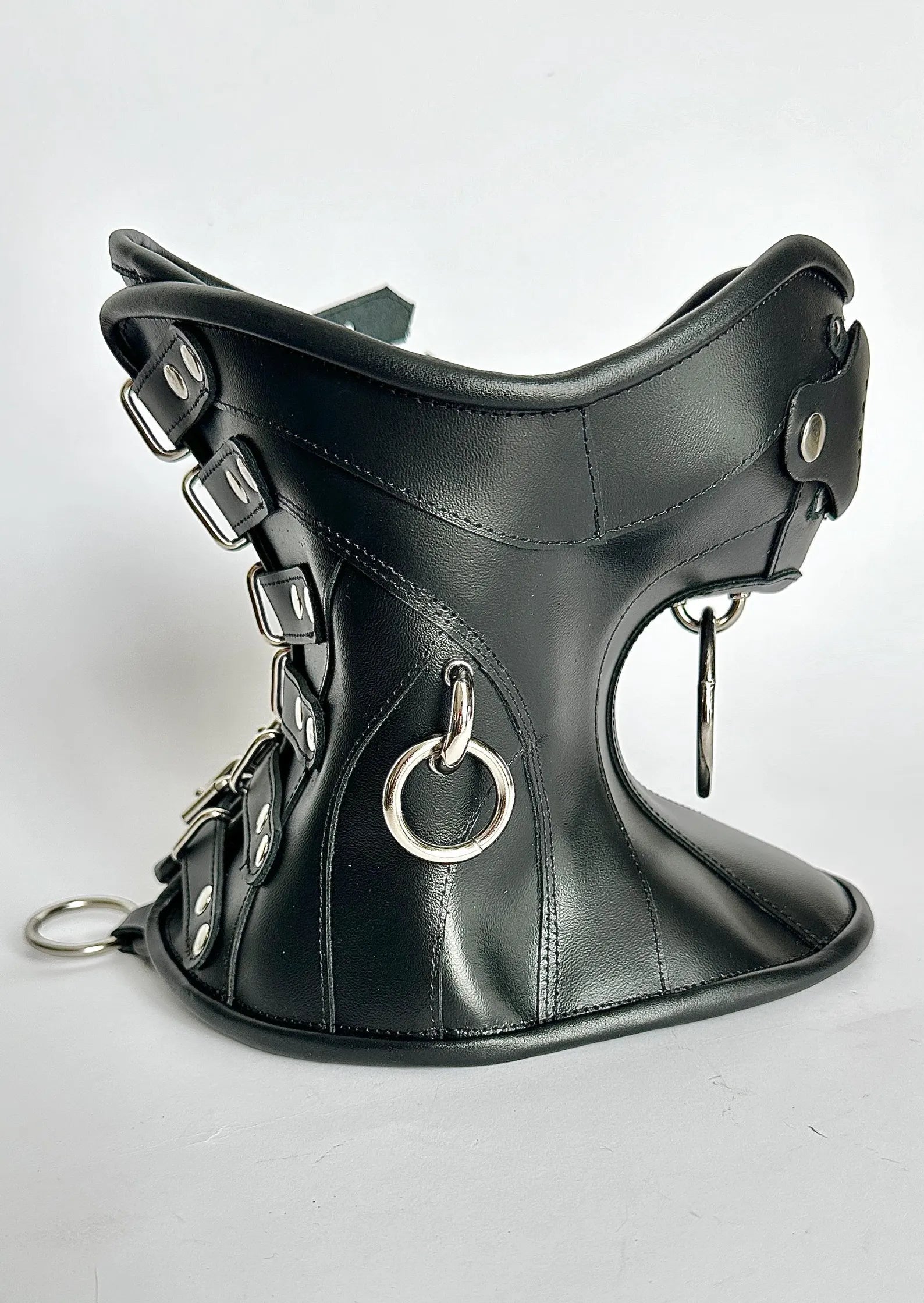 Real Leather Neck Corset Collar Posture premium model mask Fetish Bondage Gothic BDSM